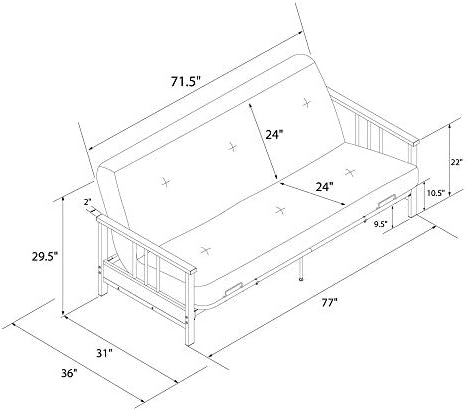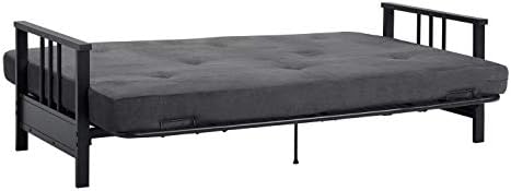 Designed with a casual modern style, the DHP Harlow Metal Arm Futon is just what your home has been missing. Ideal to add to your living room, home office or guest bedroom, the Harlow comes with a 6" futon mattress that promises long lasting comfort. It is the perfect piece to add to any room in your house that could use a little extra functionality. The DHP Harlow will be love by you and your guests when you need a spot to lay back and relax while watching television, or when you need an extra bed after a long boardgame night. This futon frame and mattress combination is the perfect solution for homes of any size that are in need of a little bit of extra functionality. We're convinced the DHP Harlow Metal Arm Futon is the right option for you!