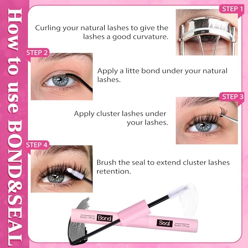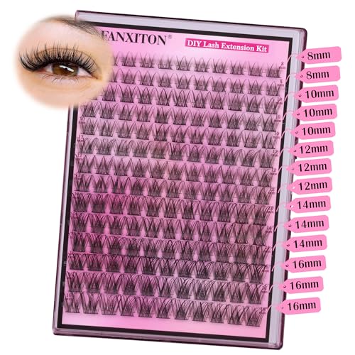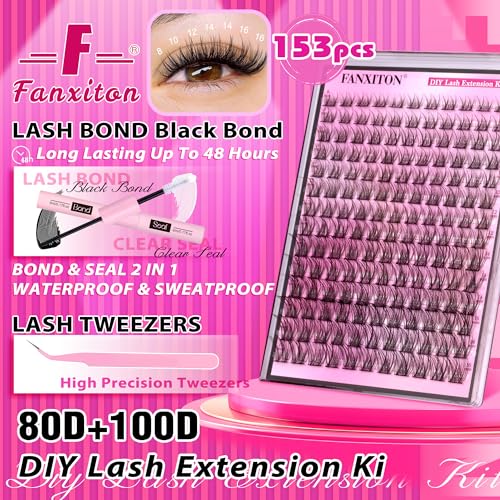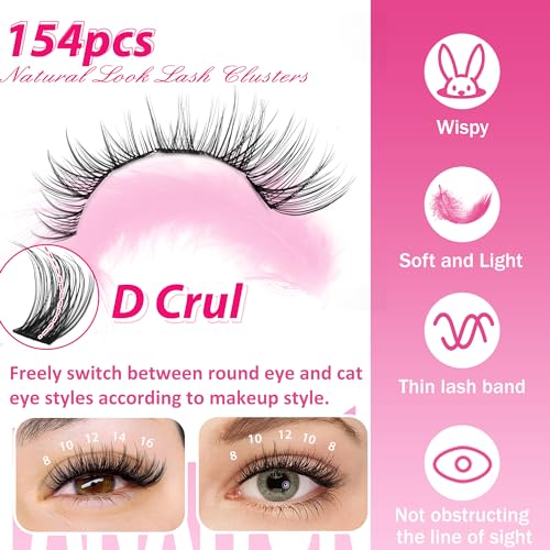 DIY Lash Extension Kit Natural Look Wispy Lash Clusters D Curl 154 pcs Lashes Clusters 8-16 mm Eyelash Extension Kit Lash Bond and Seal Lash Tweezers Individual Lashes Lash Cluster Kit For Beginners