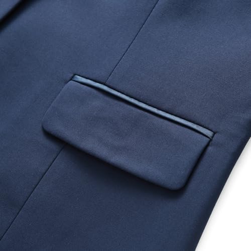 Embrace timeless elegance with a touch of modern sophistication. This stunning outfit starts with a blazer boasting a classic peak lapel, an enduring symbol of refined style. Its sleek lines are accentuated by two flap pockets adorned with delicate satin details, adding a hint of contemporary flair. Moving down, the pants are designed to flatter your silhouette and move with you seamlessly. The stretchable waist, featuring discreet elastic bands on both sides, ensures a comfortable fit that hugs your curves without pinching.