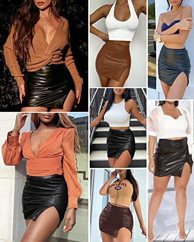 MANGOPOP Womens High Waist Bodycon Mini Short Faux Leather Skirt with Slit