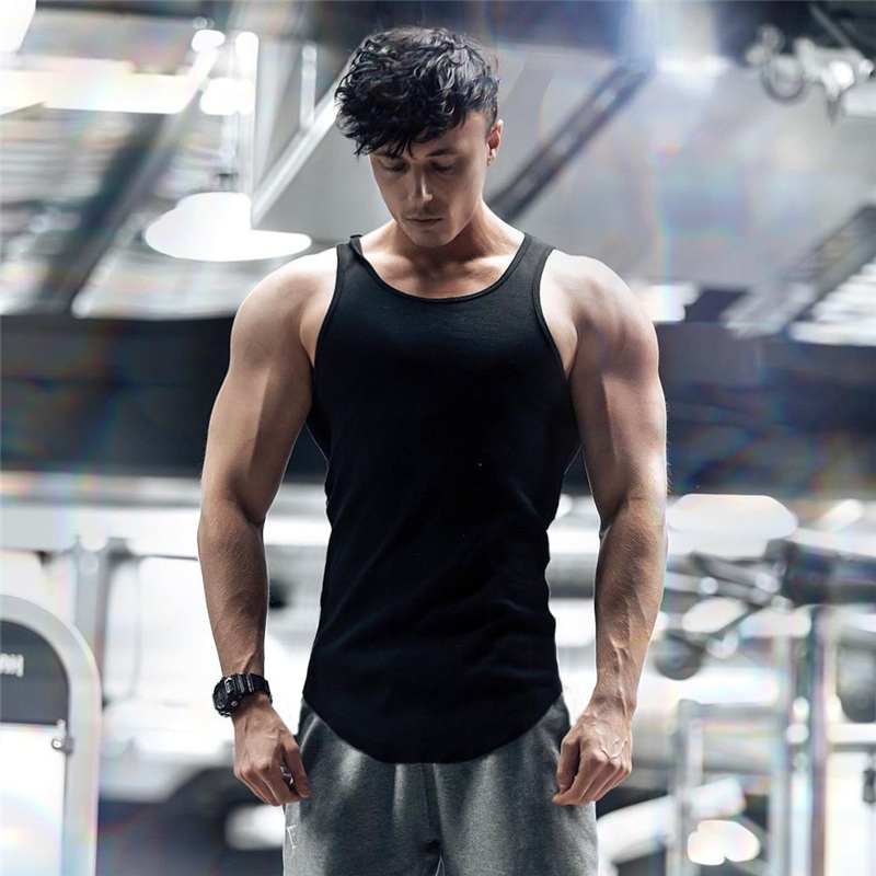 men Bodybuilding Tank Tops Gym Fitness Sleeveless Shirt Stringer Singlet Summer Casual Printed Undershirt white Vest