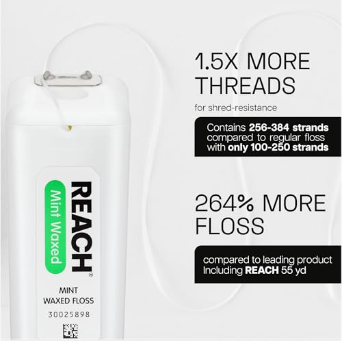 Reach Mint Waxed Dental Floss is Reach 's number-one-selling floss. This mint floss is waxed to slide easily between teeth while it removes plaque and food particles. It is accepted by the American Dental Association and is designed to clean between teeth and under the gum line. Flossing is part of a dentist-recommended oral care routine that is designed to remove plaque and help prevent gum disease.