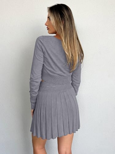 REORIA Women's Trendy Sexy High Waisted Pleated Skirts A Line Flared Going Out Mini Knit Skirts