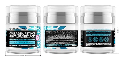 SimplyVital Collagen, Retinol & Hyaluronic Acid Cream - Anti-Aging Face Moisturizer for Face, Neck & Décolleté - Made in USA, Daily Moisturizer Face Cream - 1.7 fl.oz.