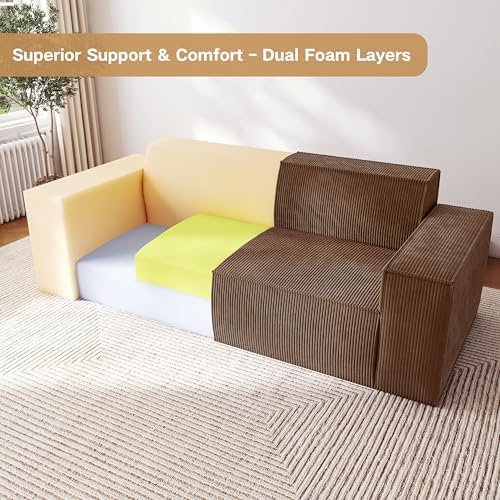Things I like about this couch from the first week of having it!1. Very comfortable. Because it has springs and memory foam like a bed, it's very comfortable.2. Oversized arm rests! Ideal for resting your arm with your ipad. Our dog also loves to sit on the arms.3. No "cracks in the couch". We used to lose things in the couch all the time. This is seamless and there are no removable cushions so no "cracks" to lose stuff in.4. Soft fabric! Feels very soft but also seems durable.5. No "legs". It sits right on the ground so it's very stable. We got rid of our last couch because of a broken leg/frame. Won't have that problem with this one!Cons (room for improvement)1. It was marketed as a three seater and could fit three ppl if they were smaller people. A lot of the length is the wide arm rests so the actual length of the sitting portion is a bit snug. I'm 5'9" and I cannot lay down on this with my legs extended. I would like and even longer version!2. Back headrest height. It's a bit short in the back our dog loves it but it provides no head rest to someone sitting in it.