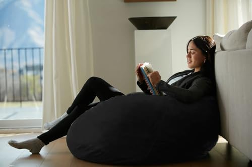Two things: these bags are huge and you can't wash the covers. The filling is shredded foam and very comfortable. I bought the larger size not realizing that it would take up half the floor space in their room. I also wish I would have bought the cover sooner, before it was a total magnet for dog hair. The bag is easy to reshape and refluff - just turn it on its side.