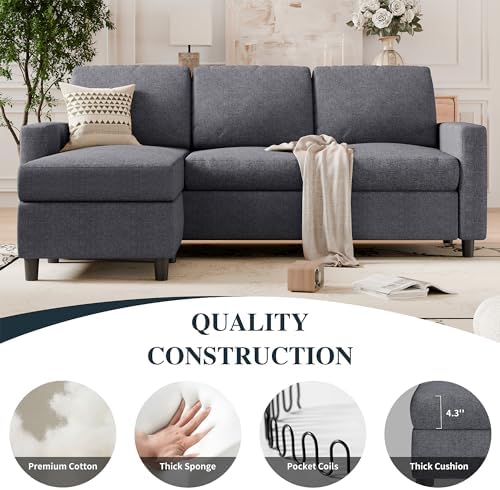SUNLEI L-Shaped Couch Sofa for Living Room Convertible Sectional Sofa with Reversible Chaise Modern Linen Fabric,Sectional Sofa Couch for Small Space(Dark Grey)