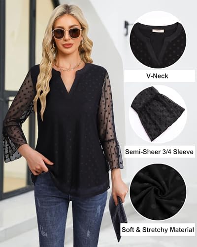 Timeson Women's 3/4 Sleeve Tops and Blouses V Neck Business Casual Shirts