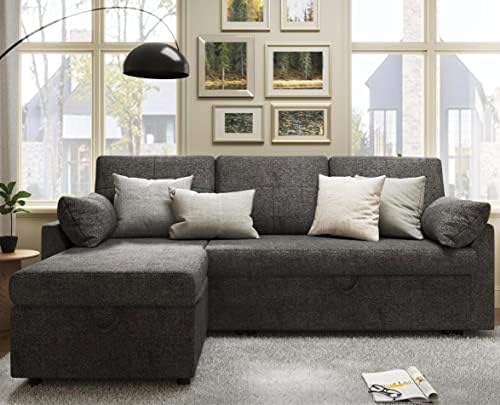 I was a bit cautious about this purchase because I typically don't buy anything on Amazon with sub-4 star ratings, but I took a chance on this couch and I'm glad I did. It shipped promptly and arrived in two large boxes - you'll definitely need two people to move the boxes and assemble this couch, but assembly was fairly straightforward. It took my friend and I a little more than an hour to get it fully put together. The cushions come flat in vacuum-sealed bags - I kept them in their packaging until it was time to put everything together, and they took about a day to fully fluff up. Note that the back cushions and armrest pillows are not exceptionally fluffy, as other reviewers have noted, but they definitely do the job and you could easily add throw pillows for extra comfort.I've had this couch set up for about a week now, and I mostly keep it in sleeper bed mode because it's so cozy. I have a pretty small apartment, and I love that I can host movie nights or have a friend stay the night if needed. It also works well as extra seating. The sleeper mode does not go all the way flat as pictured - you still have the backrest that stays upright - but seeing as I've fallen asleep on this couch multiple times, I don't think that will be an issue with overnight guests. The storage chaise is a huge plus for storing extra blankets or bedding too. The boucle fabric is very soft and looks amazing, but I will note that if you have pets, it's easy for them to snag their nails on. Just something to keep in mind! Overall would definitely recommend this couch, especially for those on a budget since this is so much more affordable than other similar styles I found.