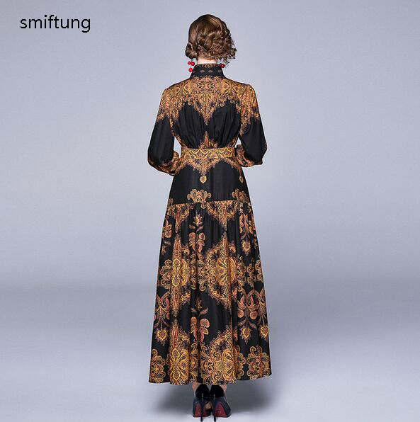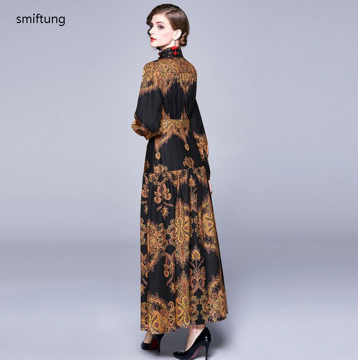 wholesmiftung spring dress / Vintage long casual dress / court style printing long sleeve dress