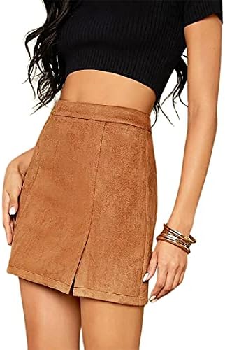 VNDFLAG Women's High Waist Faux Suede Side Split Bodycon Short Mini Skirt