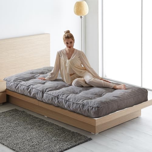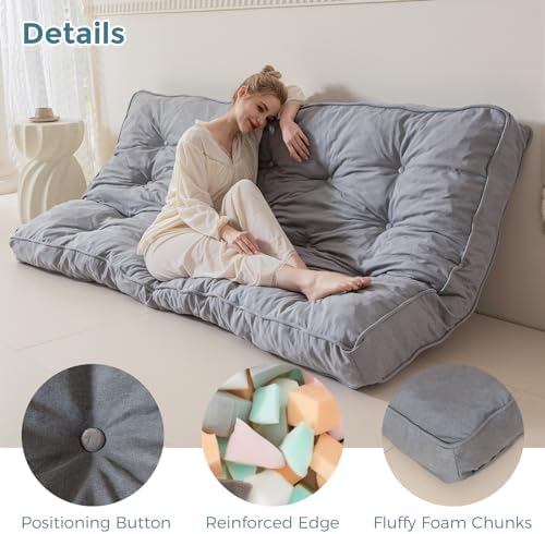 This futon is very comfortable, but still strongly and sharply smells of chemicals after almost a week. I'm not expecting the smell to go away, unfortunately, and once you buy this thing, there's a 0% chance you can return it just due to transportation. I was concerned it was too small for my futon at first (and it's not quite as big as the old full mattress I had on it) but after I steamed the very deep wrinkles in it, it fits on the frame nicely.The buttons were clearly made for another type of futon because they're velvet and don't match the texture of the rest of the fabric whatsoever (and they sell velvet mattresses). It's very odd looking.