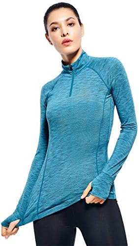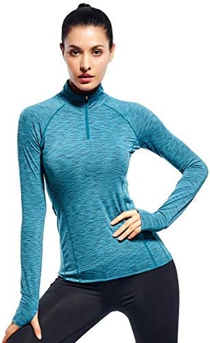 Zengjo Womens Quarter Zip Long Sleeve Workout Tops 1/4 Zip Running Pullover